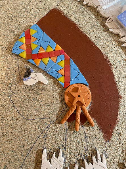 Mosaïque réalisée en verre, émaux et céramique cuite dans mon four.
